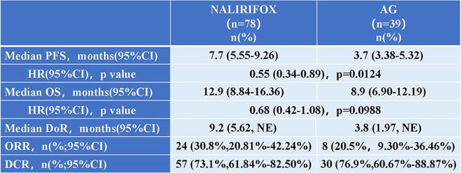 安全性方面,与AG组相比,NALIRIFOX组血液学毒性发生率更低,总的腹泻发生率为43■◆■■◆★.6%★★★■◆,≥3级的腹泻发生率为0%,低于NAPOLI-3研究的腹泻发生率。且未增加新的安全性风险■◆◆◆■★。总体而言,本研究与已有的NAPOLI-3研究结果一致。