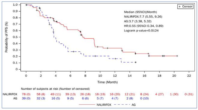 医脉通:您团队在今年ASCO会议上公布的“NALIRIFOX(伊立替康脂质体*+奥沙利铂+5-Fu/LV)对比AG(白蛋白紫杉醇+吉西他滨)治疗不可切除的局部晚期或转移性胰腺癌的随机II期研究◆★■◆◆◆”受到学界广泛关注★■■◆◆。能否请您介绍一下该项研究的结果?