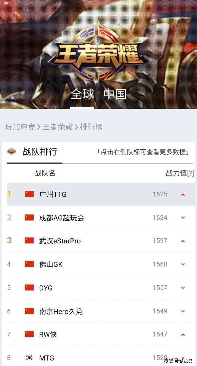 广州TTG以1分的优势反超AG超玩会■★■■◆★,夺得第一。成都AG超玩会紧随其后,与第三名的武汉eStarPro还保持着较多的距离。第4-6名的战队相差无几■★◆★。这个战力值的评分是基于胜负预期结果间差距■■★◆◆★,通过国家排行算法计算得出◆■■。类似于国际足联排名的计算规则★■★。通过这个积分也可以看出各个战队目前的状态与实力。